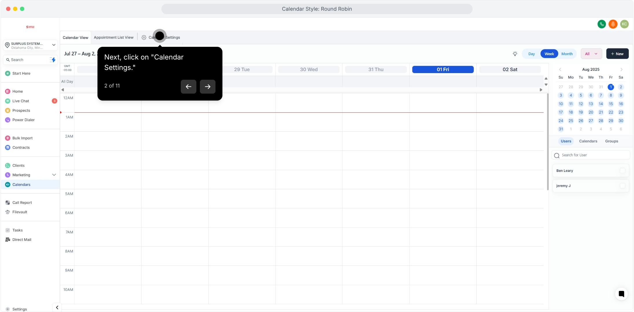 2. Next, click on "Calendar Settings."