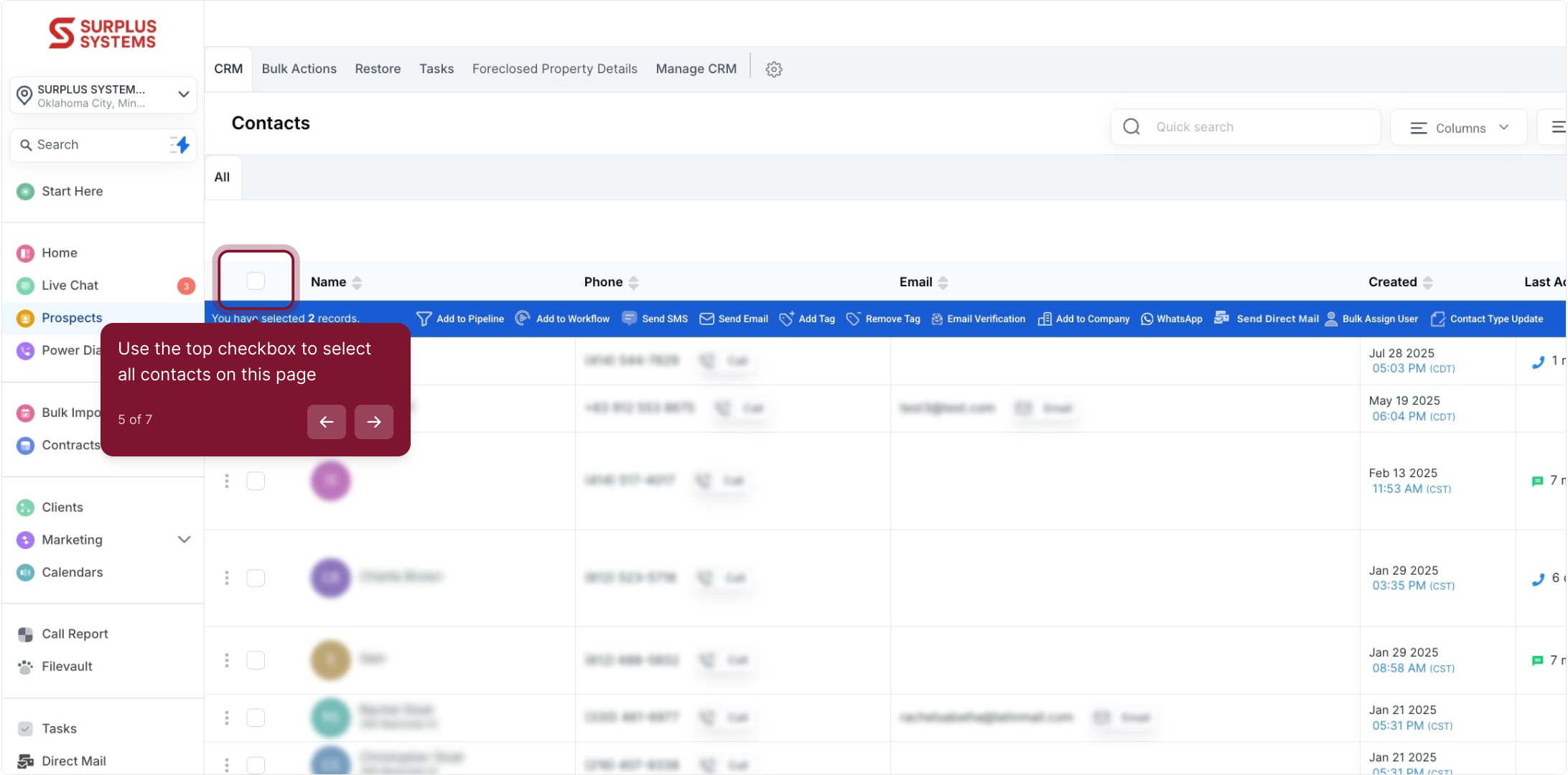 5. Use the top checkbox to select all contacts on this page
