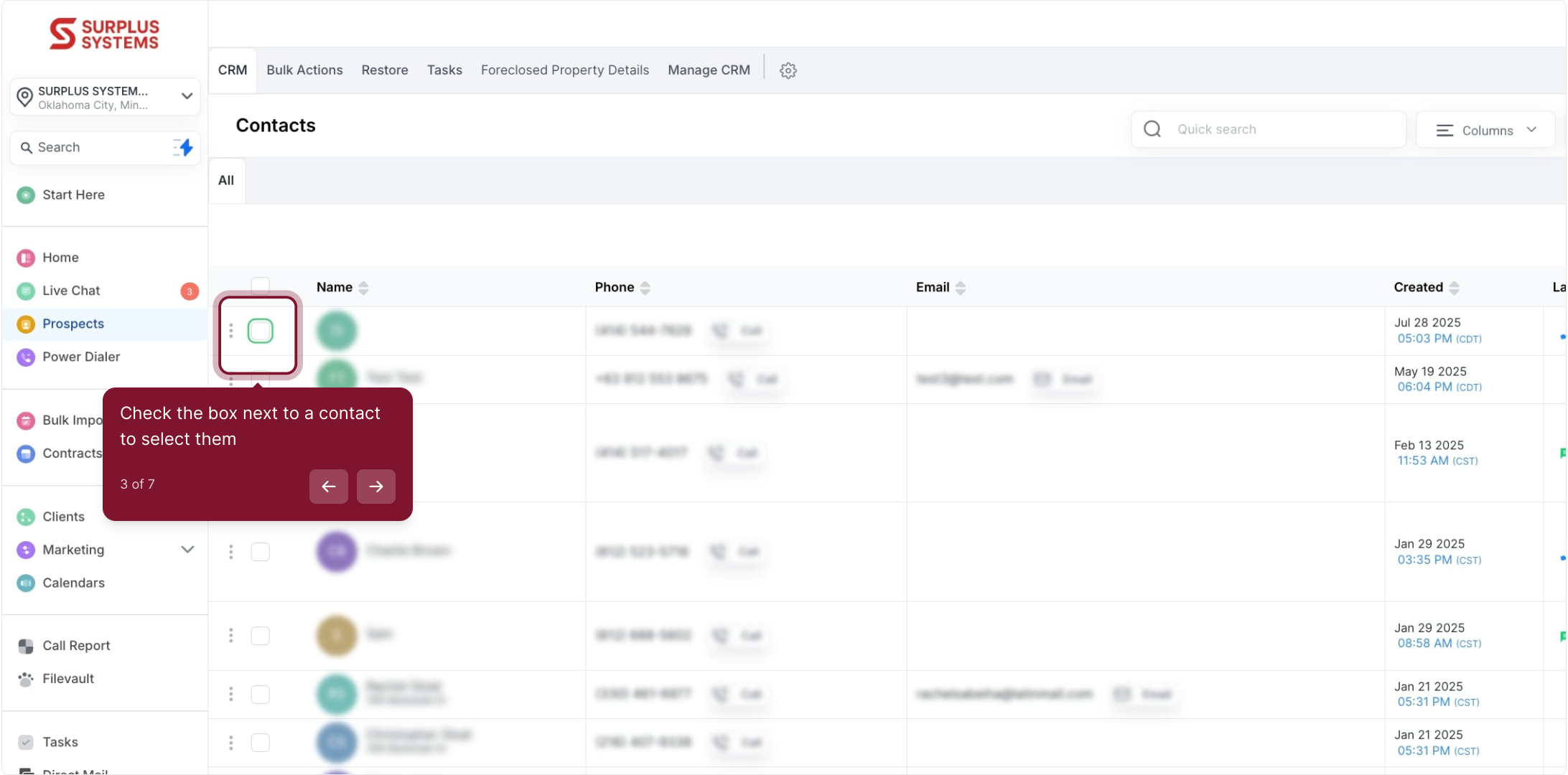 3. Check the box next to a contact to select them